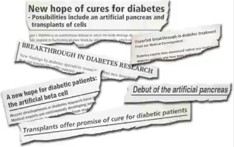 Gli annunci di progressi scientifici offrono la speranza di nuovi approcci al diabete di tipo 1. Sfortunatamente, i titoli di testa possono forzare tali progressi più di quanto sia giustificato. Il fatto è che la scienza si muove lentamente, e le eccitanti “scoperte” citate nei titoli richiedono conferma, perfezionamento e ulteriore sviluppo, che possono protrarsi per anni. A volte le basi scientifiche sono deboli. A volte le scoperte iniziali possono persino dover essere ritrattate perchè non confermate. A volte le osservazioni in modelli animali non si traducono in risultati simili negli esseri umani. A volte gli sviluppi che sembrano funzionare su piccola scala non possono essere realizzati e prodotti su grandi numeri (scala commerciale) e quindi gli interventi potenzialmente allettanti potrebbero non essere accessibili dai pazienti o dal sistema sanitario. Per tutti questi motivi, non tutti i progressi portano a risultati che migliorano la salute delle persone con diabete di tipo 1. Tre aree nel campo del diabete di tipo 1 costantemente hanno dato hope ma anche hype: la terapia sostitutiva cellulare, gli interventi per regolare il sistema immunitario e la somministrazione automatica di insulina mediante tecnologia. Da molti anni si propone che i progressi in queste aree siano in grade di cambiare la prospettiva del soggetto affetto da diabete di tipo 1. Tuttavia, i giornalisti e noi scienziati dobbiamo fare attenzione a non esagerare eccessivamente sui progressi, ma piuttosto a riconoscere e proiettare il lungo tempo necessario per la realizzazione delle speranze. Nella figura allegata sono riportati i titoli che annunciano i progressi nel campo del diabete. Potrebbe sembrare una raccolta di titoli fatta nel 2017. La cosa che fa riflettere è che questi titoli sono derivati da una diapositiva di una presentazione di Daniel Mintz all’American Diabetes Association Postgraduate Course nel 1975.